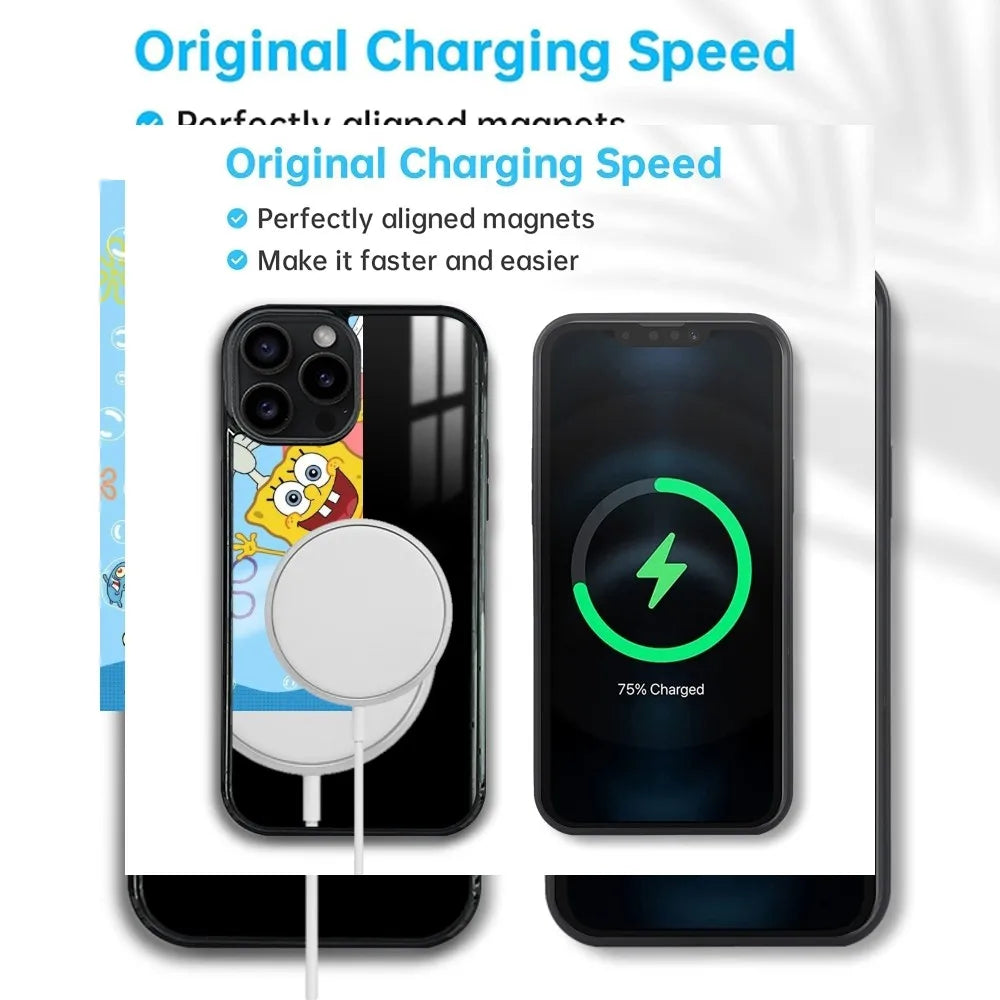 🧽 Cartoon S-SpongeBob Magnetic Phone Case – Mirror & Magsafe Compatible for iPhone Series πŸ“±βœ¨