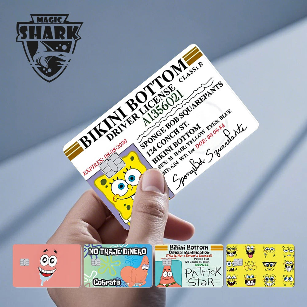 Protect and personalize your debit or credit cards with these adorable Magic Shark matte PVC stickers featuring SpongeBob, Patrick, Star, and Cobra cartoon designs — fun and durable card skins for everyday use!